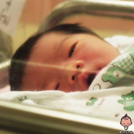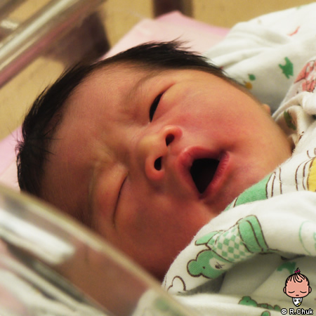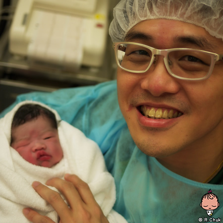 辦好所有手續,陪伴進入產房,護士告知已全開咧!只等倪醫生來穿羊水便可生產了。等到02:50,倪醫生抵達,拮穿羊水後,彈彈浣開始用力,經過1分49秒的痛,伴隨那滿眶的眼淚、超越十級地震的痛楚及尖叫聲,YY順利誕生來到這世上。