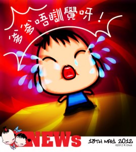 2012-5月/c. YY變化篇 :: 4-6月/QQ-02歲/YY-00歲 QQ | 爹爹唔瞓覺呀! 2012/05/132012/12/12 Number of View: 1127 獨栽QQ自己醒左就係都唔俾人瞓,又喊又嗌又扯,不小於十分鐘呀………