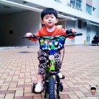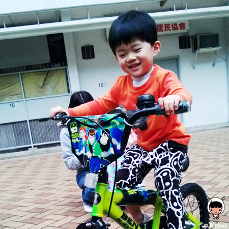 QQ第一次坐上他的3歲生日禮物-Ben10單車,意想不到的是還未夠高的他竟可操控自如,自由轉彎來去,好叻仔呀!